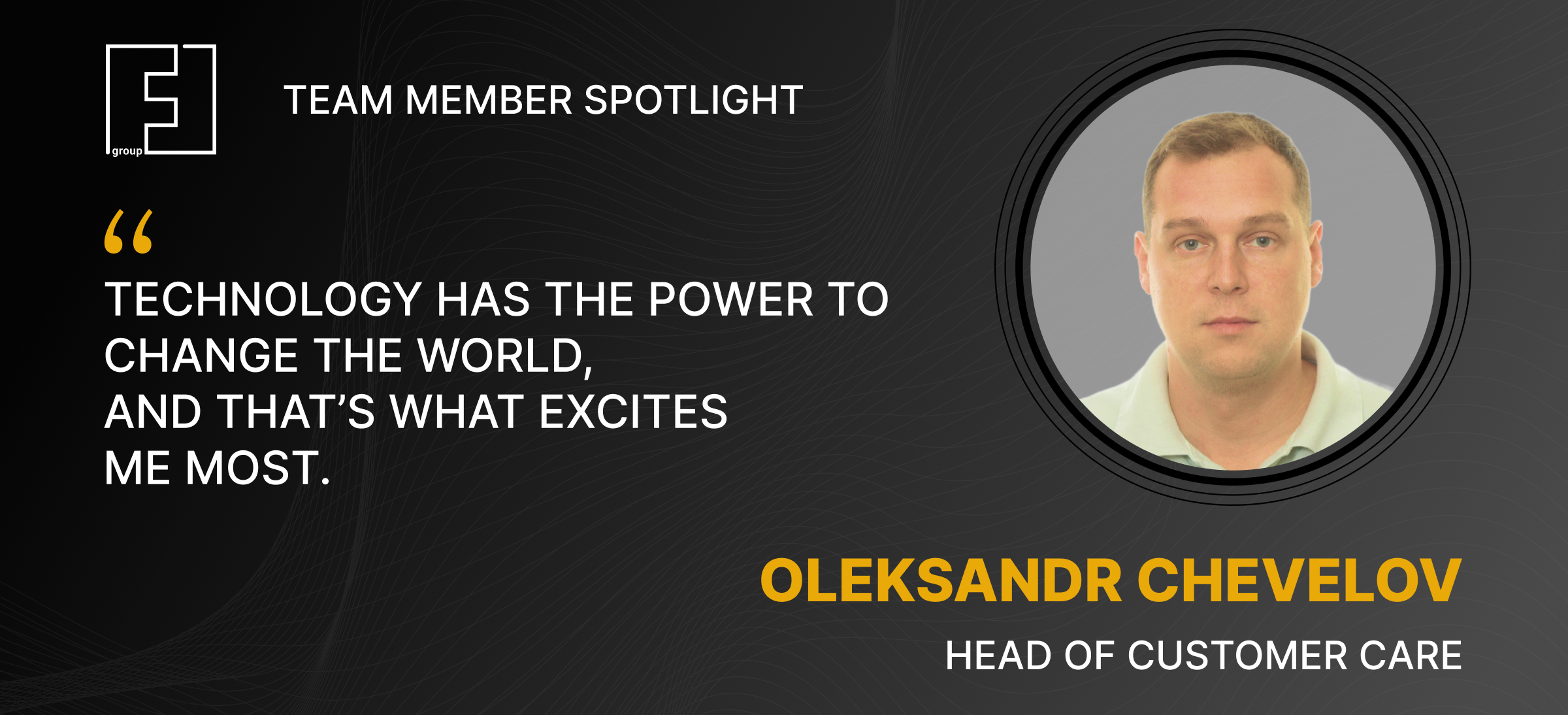 Meet Oleksandr Chevelov, Head of Customer Care at FF Group. He is dedicated to building strong, transparent relationships with customers and ensuring their experience is seamless from the very first interaction. Oleksandr focuses on creating efficient processes, fostering collaboration across teams, and turning feedback into meaningful improvements. Under his leadership, Customer Care has become a driving force that supports both customer satisfaction and the long-term success of our AI-powered solutions.